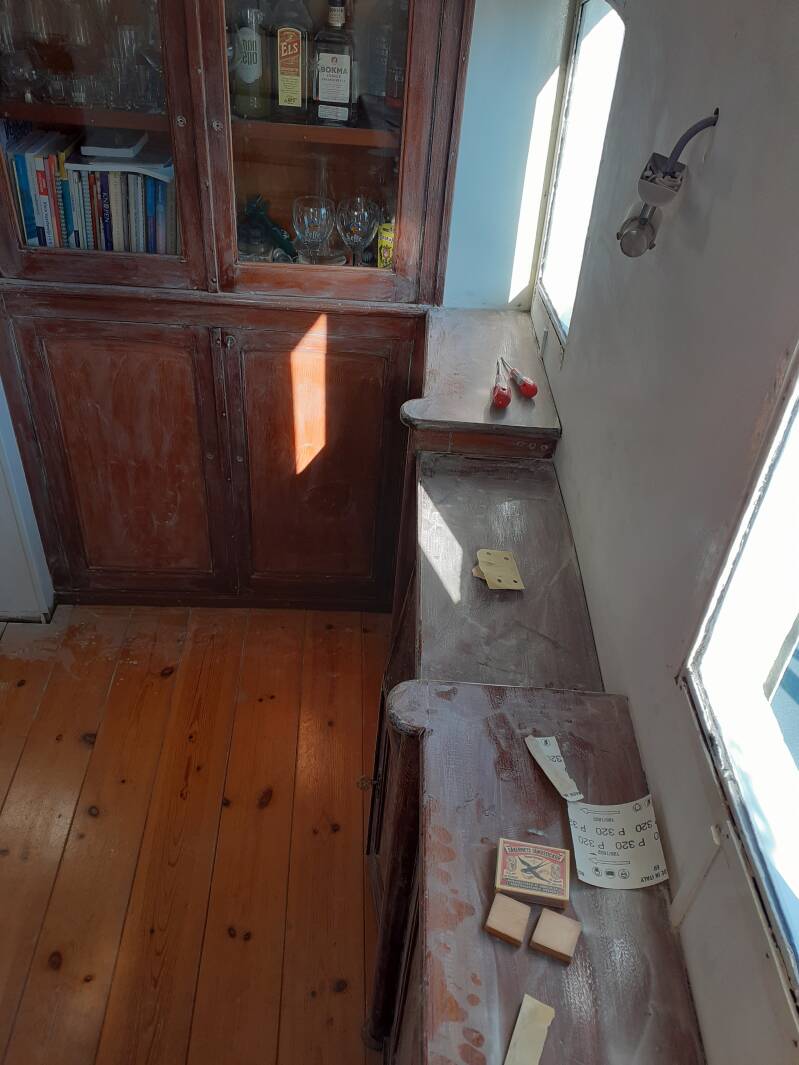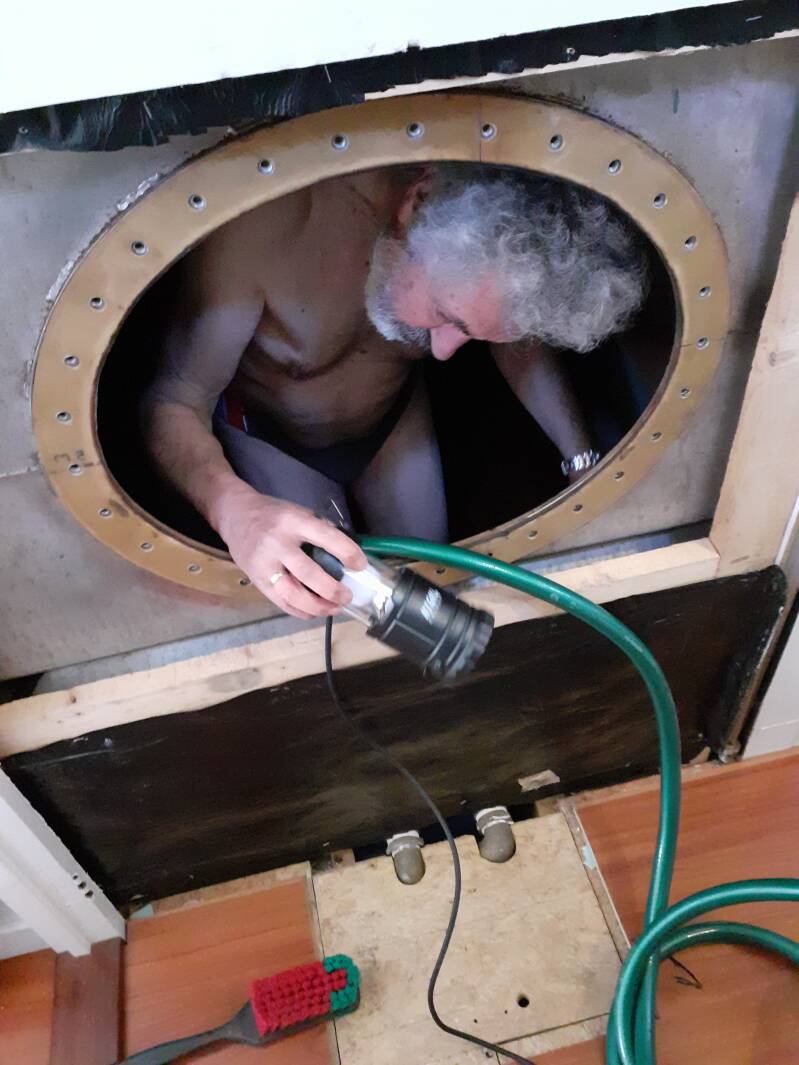 Na de winter begint het vaarseizoen weer. Dit betekent niet dat er in de winter niets is gebeurd op de Talisman hoor. In februari heeft Frans de zijden van het schip buitenboord afgestoken en in de verf gezet en daarna zijn we binnen aan de slag gegaan. Na 16 jaar aan boord wonen kom je toch echt aan verfklusjes toe. Als eerste de stuurhut onder handen genomen. Eerst strippen en dan schuren en schilderen. Hierna de roef en ook de watertank moet schoongemaakt. Hiervoor moet een deel van de betimmering weggehaald worden. Tank open maken en Frans in zwembroek naar binnen met een doek en soppen maar. Gelukkig is onze tank van roestvrij staal en na een sopbeurt ziet hij er dan ook weer als nieuw uit. Het halletje ook gelijk in een nieuwe laag verf en voilà… ook weer netjes. De rest van het ruim komt na de werfbeurt dit najaar aan de beurt, omdat een schip dat uit het water wordt gehaald vreemde krachten krijgt te verduren en er scheurtjes in de kit enzo kunnen komen. Beter even wachten dus dan alles twee keer doen.