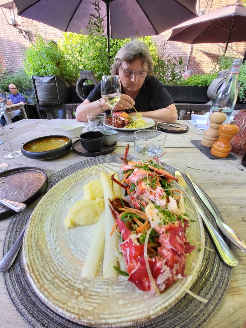 Vandaag sluis Lith gepasseerd met in de ene kolk varend erfgoed en in de andere kolk een heel groot modern jacht. Tegenpolen. We blijven bij Ravenstein aan de buitenkant van de haven. Ravenstein is net als Woerkum een vestingstadje. Laten we hier nou een visum nodig hebben, omdat het een ‘soevereine staat’ is. Gelukkig kregen we die bij het VVV en konden rustig verder wandelen. Bij de molen is een bierbrouwerij en daar hebben we direct contact gelegd voor de bierbrouwer in Woerkum (na eerst geproefd te hebben). De dag sluit af met een flinke regenbui en hiermee frist het lekker op.