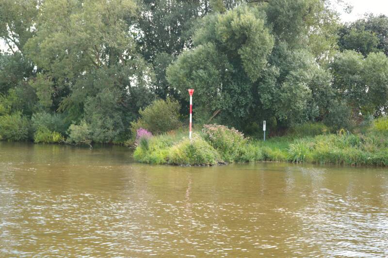 Lageruit op de Weser zien we toch af en toe wat kribben verschijnen. Het blijft een genoeglijke rivier om op te varen, al kunnen we wel zien dat we na Bremen richting zee gaan en in drukker gebied komen. Zeeboten en industrie, een zeesluis en verkeersposten. Inmiddels varen we op een deel dat we al eerder hebben gevaren en dit brengt ons op een zijrivier, de Hunte bij Elsfleth . Hier hebben we aan een kade vastgemaakt, maar helaas kwam de havenmeester vertellen dat dit een ISPS gebied is. Streng verboden gebied behalve voor speciale zeeschepen met een certificaat, een maatregel genomen na nine eleven. De vriendelijke man gaf ons een plekje aan een ponton van een passagiersboot die er niet is. Grappig: de havenmeester wist ons nog te herinneren van tien jaar geleden. Knap hoor. Ook kwamen er twee mensen langs die ons hebben zien komen en zij kwamen vertellen over een vereniging van Duitse Traditionele schepen in Weener.