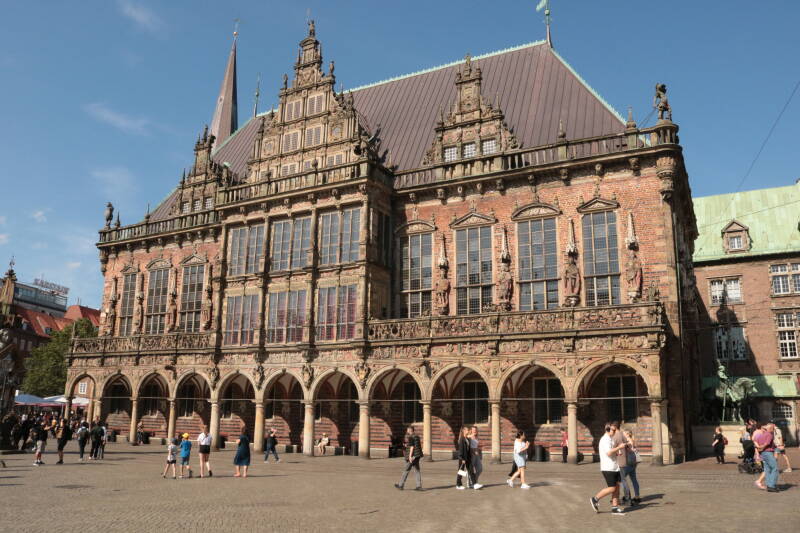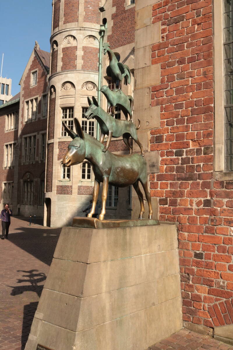 We zijn in Bremen aangekomen en na wat heen en weer bellen hebben we een mooi plekje voor de stad weten te bemachtigen. Met drie man sterk stonden ze klaar om ons te ontvangen. We zijn direct gaan ontdekken, want het is toch alweer tien jaar geleden dat we hier waren. Leuke kleine straatjes met winkeltjes en restaurantjes. Natuurlijk ook de Bremer Stadsmuzikanten. (sprookje van Grimm) Deze konden we niet missen, want overal om je heen zag je ze boven op elkaar staan. Zelfs op het dak van het havenkantoor stonden ze licht te geven. De stad in de avond is trouwens ook een plaatje, de lichtjes fonkelen in het water. Frans en Ik gingen naar een museum in de Schnoor (dit is een oud gedeelte met die kleine straatjes) en dat museum bleek eerder een toneeluitvoering te zijn. We gingen door het hele pand en zo zagen we hoe het leven in die tijd was. Het speelde in 1646 en de mensen waren helemaal terug in die tijd (net als in Woerkum bij het levend museum in mei).