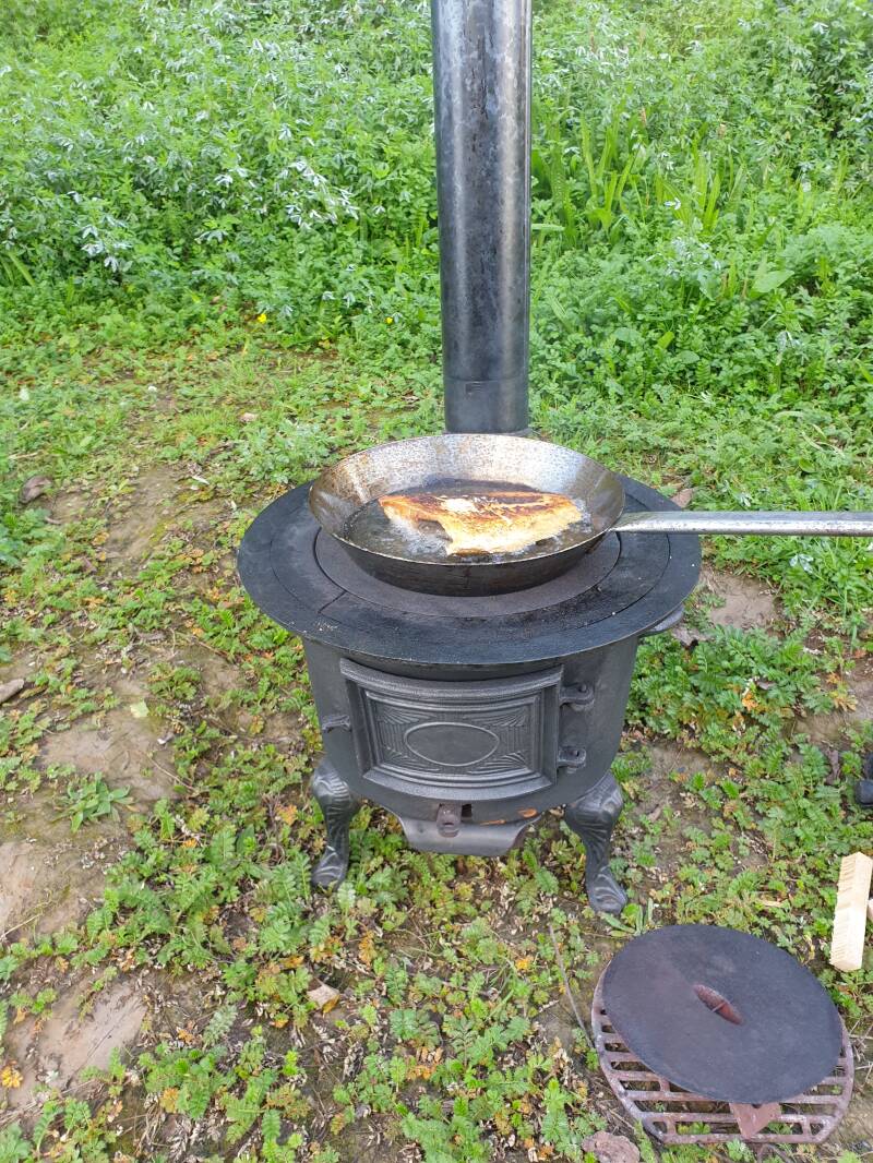 Maandag is er in de ochtend geen wind, maar rond het middaguur trekt het aan en kunnen we het jolletje in het water leggen en fijn een paar uur zeilen. Heerlijk zo over de plas scheren. Ruim 8 km per uur en laverend helemaal naar de andere kant, Valeplas, Gieseplas, Westerplas en Lathumseplas en terug voor het windje. Voor het avondeten gaat het vuurduveltje de wal op. eerst visjes bakken en dan het rooster erop en bbq-en. Als toetje bakken we Luikse wafels, jammie met aardbeien en poedersuiker. Het is een topdag geweest.