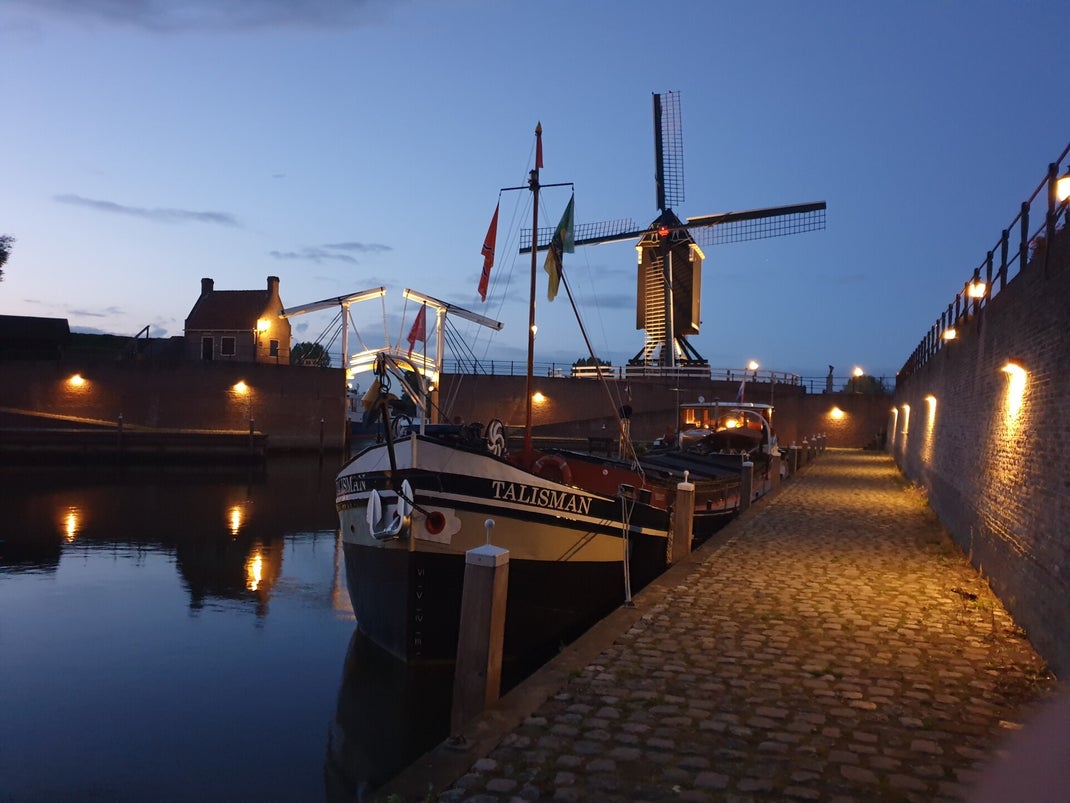 We besluiten voor twee nachtjes te betalen, want dinsdag komt Kirsten uit haar werk gezellig een kopje thee drinken. Ook is er een leuk eetcafé aan de haven waar we gaan eten om onze trouwdag te vieren die woensdag is. (we doen dit nu, omdat we naar de Biesbosch gaan en daar kunnen we kiezen uit een wilg over bakboord of een rietpluim over stuurboord) Grappig, want als we thuis komen na een heerlijk stoofpotje vis, kijken we op de tv naar de erfgenamen en zien daar Heusden met alles waar wij ook gelopen hebben en Ruben zit op het terras van datzelfde eetcafé. Toeval.