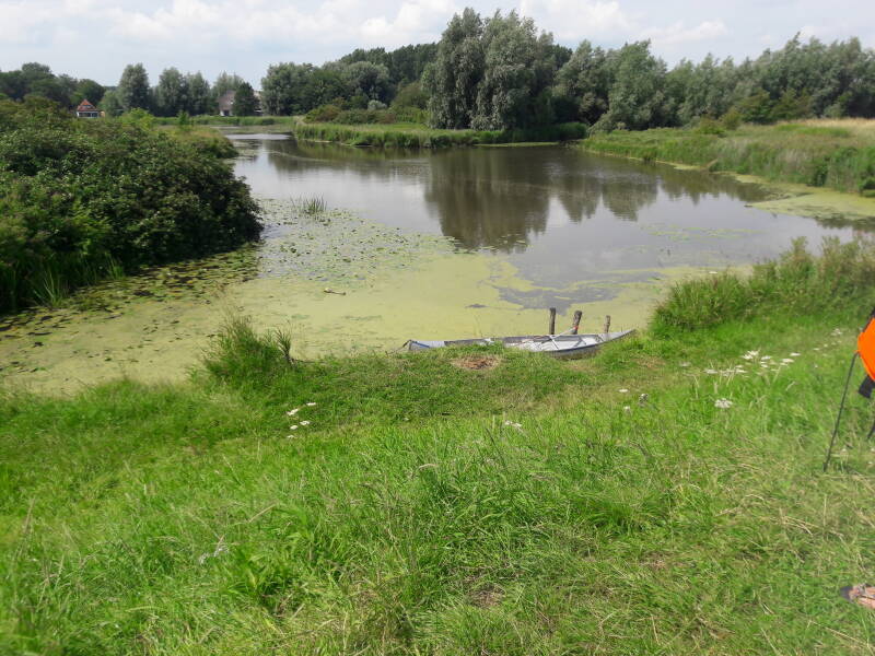 Elske en Jochem vertrekken naar huis en nemen Anne mee. Er moet weer gewerkt worden, maar de jongens mogen nog blijven logeren en worden later opgehaald. Met hen gaan we een kanotocht maken. Vanuit de kano zien we een vreemde heuvel. Als we op onderzoek uitgaan zien we dat het een grafheuvel is. Hier zijn graven uit de Westerkerk van Leeuwarden herbegraven. Terug aan boord van de Talisman gaan de mannen met een visnetje vissen. Frans is de enige die twee visjes weet te vangen. Haha dat zijn denk ik de allereerste vissen die hij vangt.