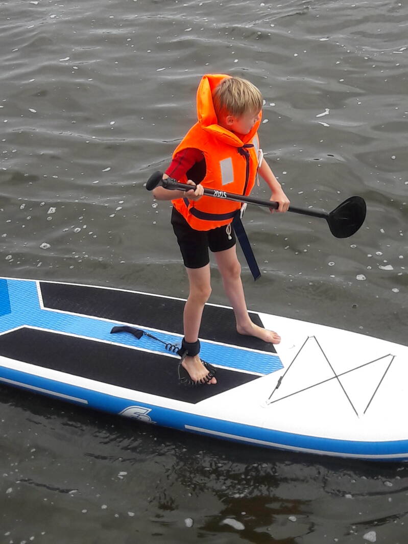 Het was vorige week de eerste keer zeilen voor Jelte , zondag ging hij voor de eerste keer suppen. De vereniging heeft 3 valken, 3 pica/lasers( open zeilboten) en 3 supplanken geregeld. Wij hadden Jelte voor het suppen opgegeven. Aan zijn snoet te zien vond hij het eerst wel een beetje spannend, maar al snel ging hij er als een speer vandoor en was er bijna niet af te krijgen. Na de lunch nog een heel eind gezeild en zo was het een sportieve zondag. Aan dek van de Terra Nova nog een afsluitende borrel met de schippers die nog niet vertrokken waren. Complimenten voor de organisatie, een mooi samenkomen in deze moeilijke tijd.