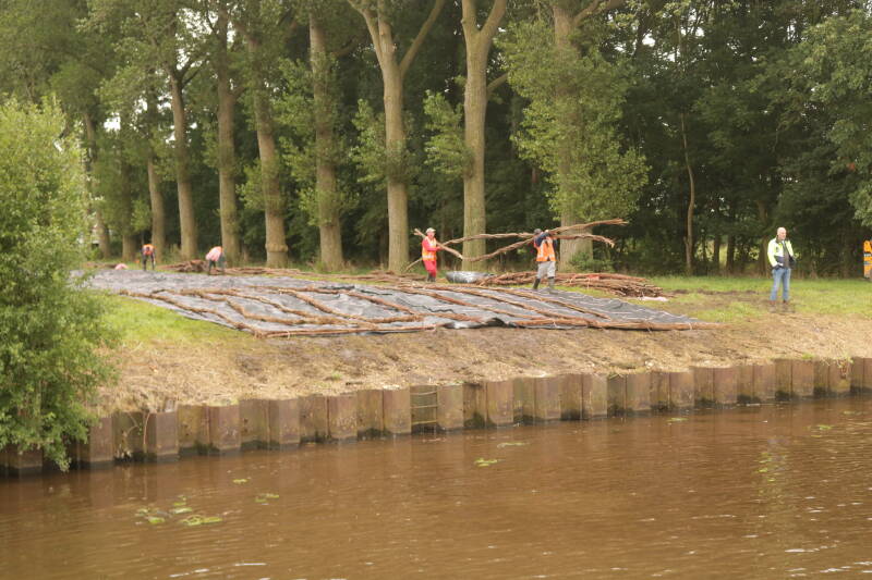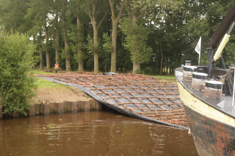 Sjoerd, Anouk en de kinderen zijn weer vertrokken en de rust is weergekeerd aan boord van de Talisman. Het is altijd even wennen, als ik kinderstemmetjes hoor reageer ik direct om erachter te komen dat ze vertrokken zijn. We varen verder en meren af bij de sluis van Gaarkeuken. Een wandelingetje naar het dorpje Grijpskerk is leuk. Een gezellig dorpje waar zaterdag wedstrijden Fierljeppen worden gehouden. Helaas kunnen we die niet meemaken, maar het is wel typisch uit deze omgeving. Bij de sluis ligt een zinkstuk en hiermee hebben wij vroeger met de Frans ook gewerkt. Woensdagmorgen worden we bijtijds wakker van een kraanschip naast ons die het zinkstuk van de kant gaat trekken en het moet laten afzinken voor het remmingwerk. Sjoerd en Jelte hadden dit ook heel mooi gevonden, zijn ze toch nog te vroeg vertrokken. Zo rap als er weer een nieuw zinkstuk gemaakt wordt als de andere in het water ligt.