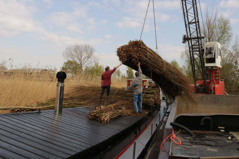 Maandagavond met een aantal havenbewoners de Anna Margrietha, ook een steilsteven, helpen laden met stro en vandaag met hulp van de buurtjes naar Hardinxveld om het rijshout te laden. Rijshout zijn de takken die van een wilg geknot worden. Hier werd vroeger van alles van gemaakt. Schrankkeet, zalmsteek en zinkstukken voor het verstevigen van dijken en bij de tunnelbouw bv.